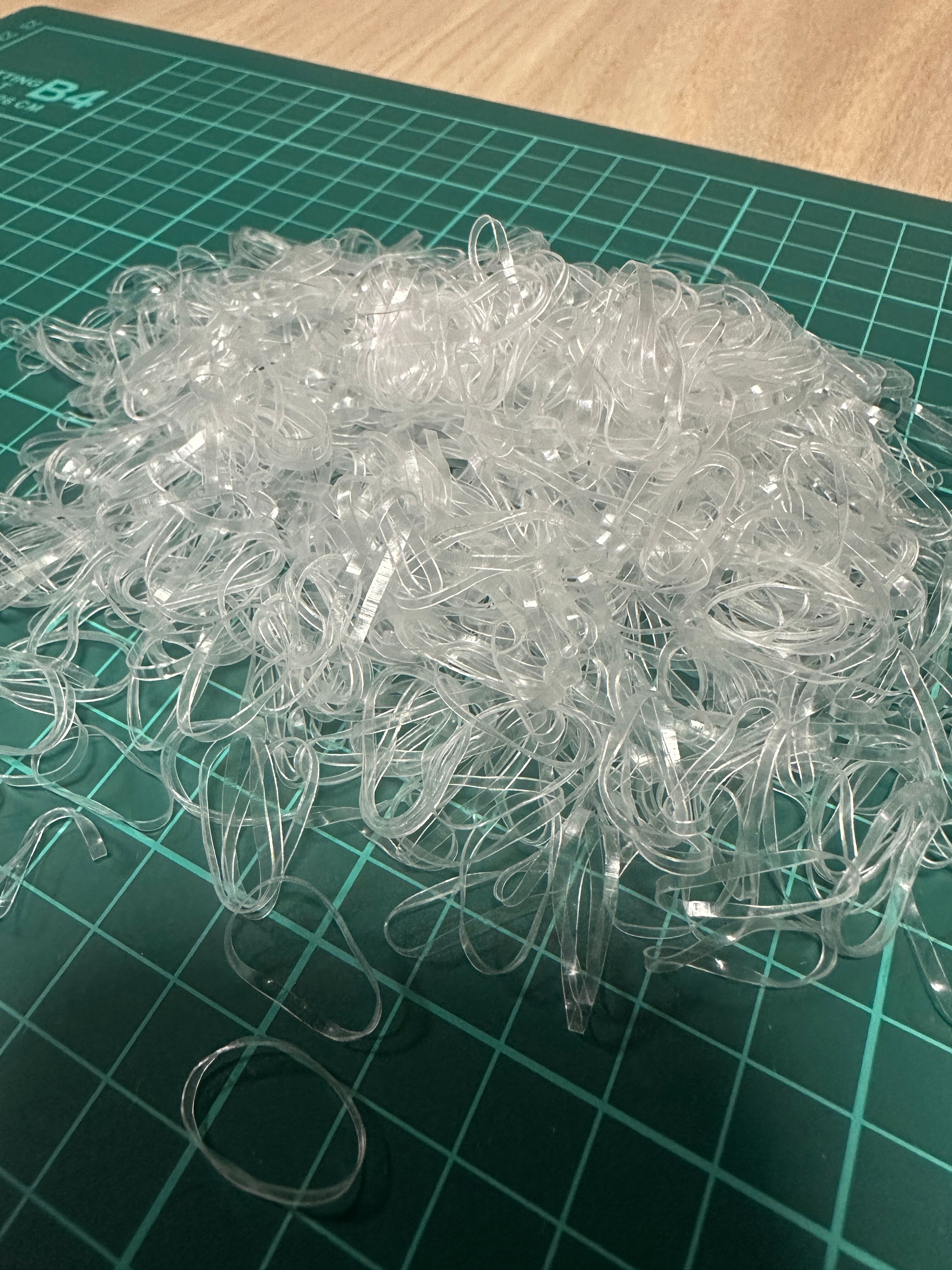 100均のゴムは少し経が大きいのと、コスパも1000本(多分)なので、このゴムを見つけてからは、こちらをずっと使用しています。