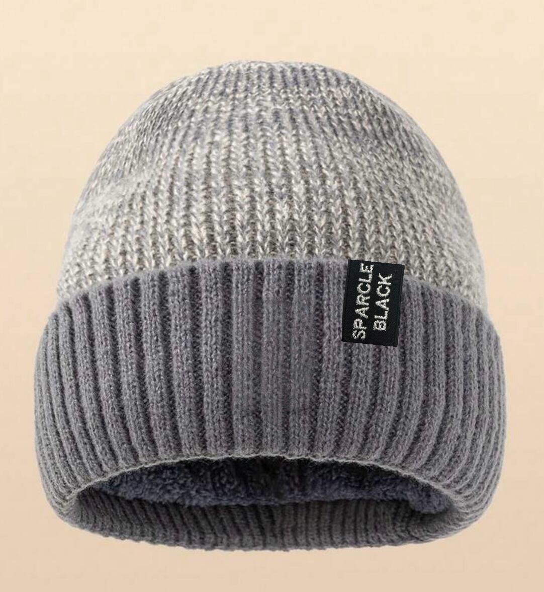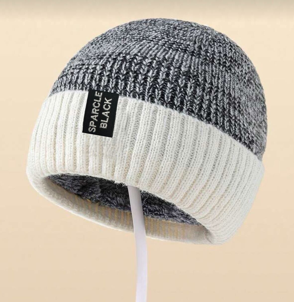 SPARCLE BLACK極暖裏ボアリブ×ミックスリブ配色ニットキャップ