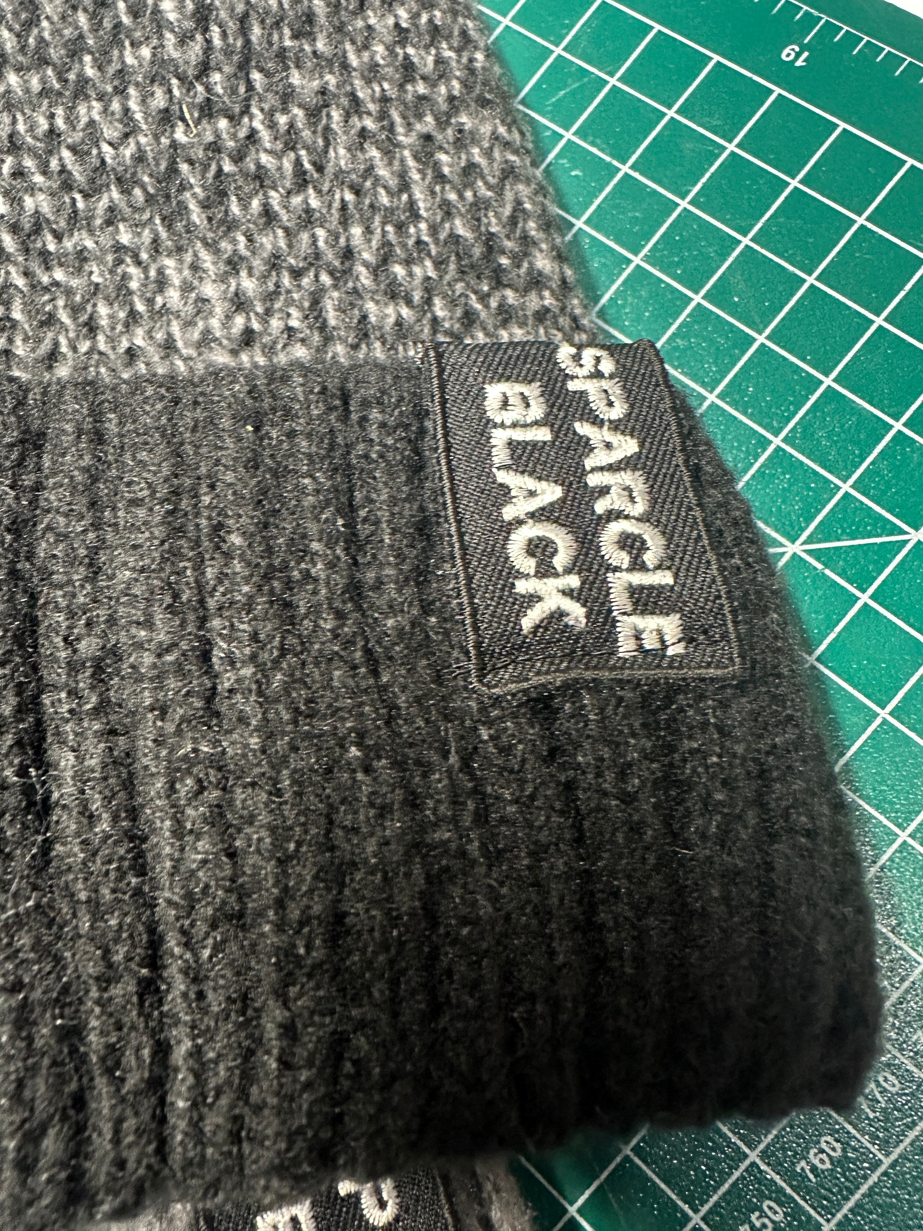 リブの折り返しのところにSPARCLE BLACKタグワッペンをデザインしています。