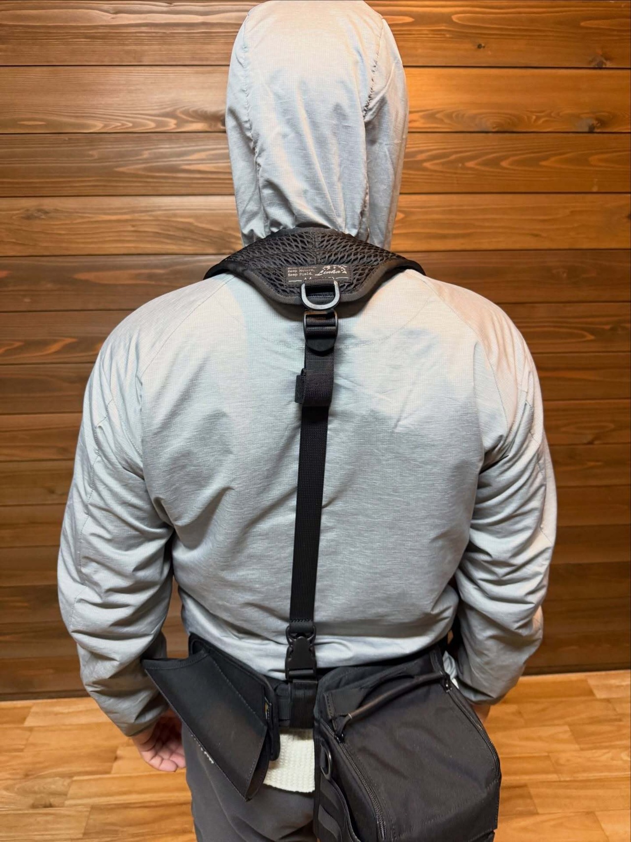 市販のホームセンターに売ってる工事用サスペンダーだと分厚く、夏には暑く、冬には嵩張るという懸念点を解消したサスペンダーです。