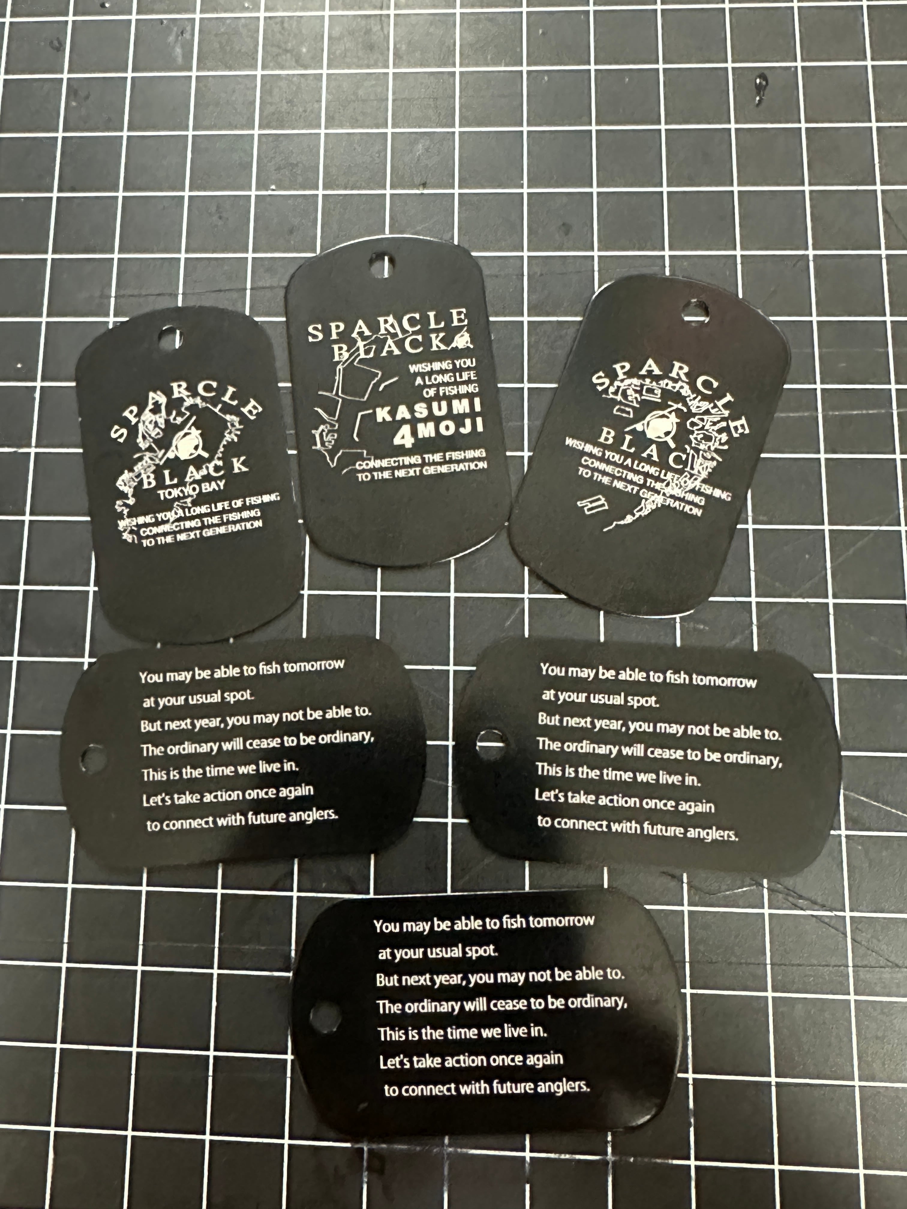 黒のアルミアルマイトのドッグタグプレートにデザインを彫刻します。