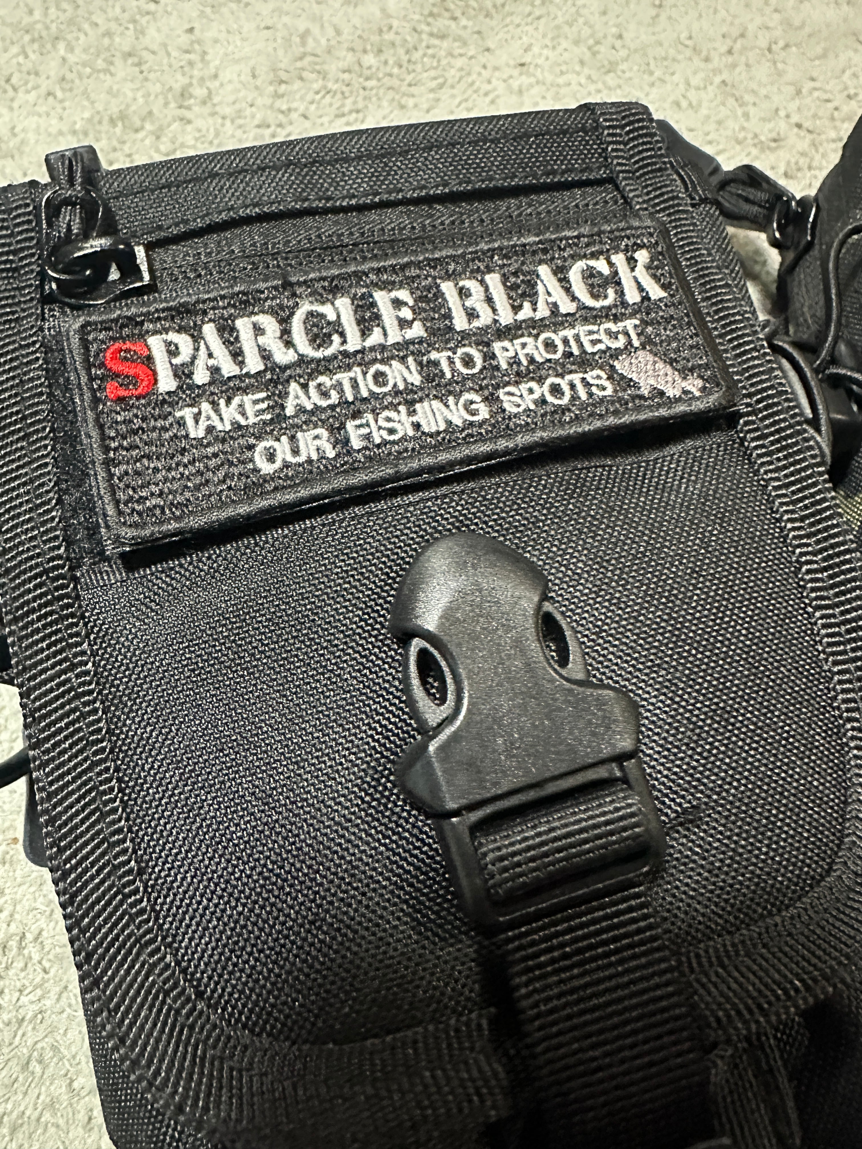 TAKE ACTION TO PROTECT OUR FISHING SPOTSのメッセージを刺繍したワッペンです。