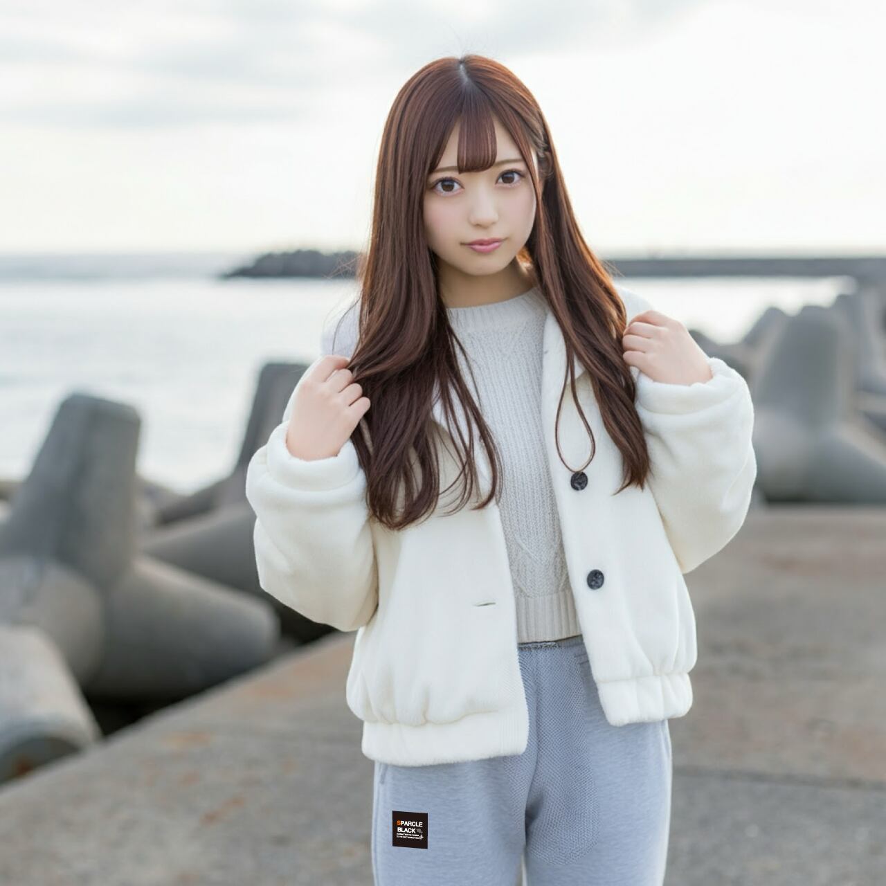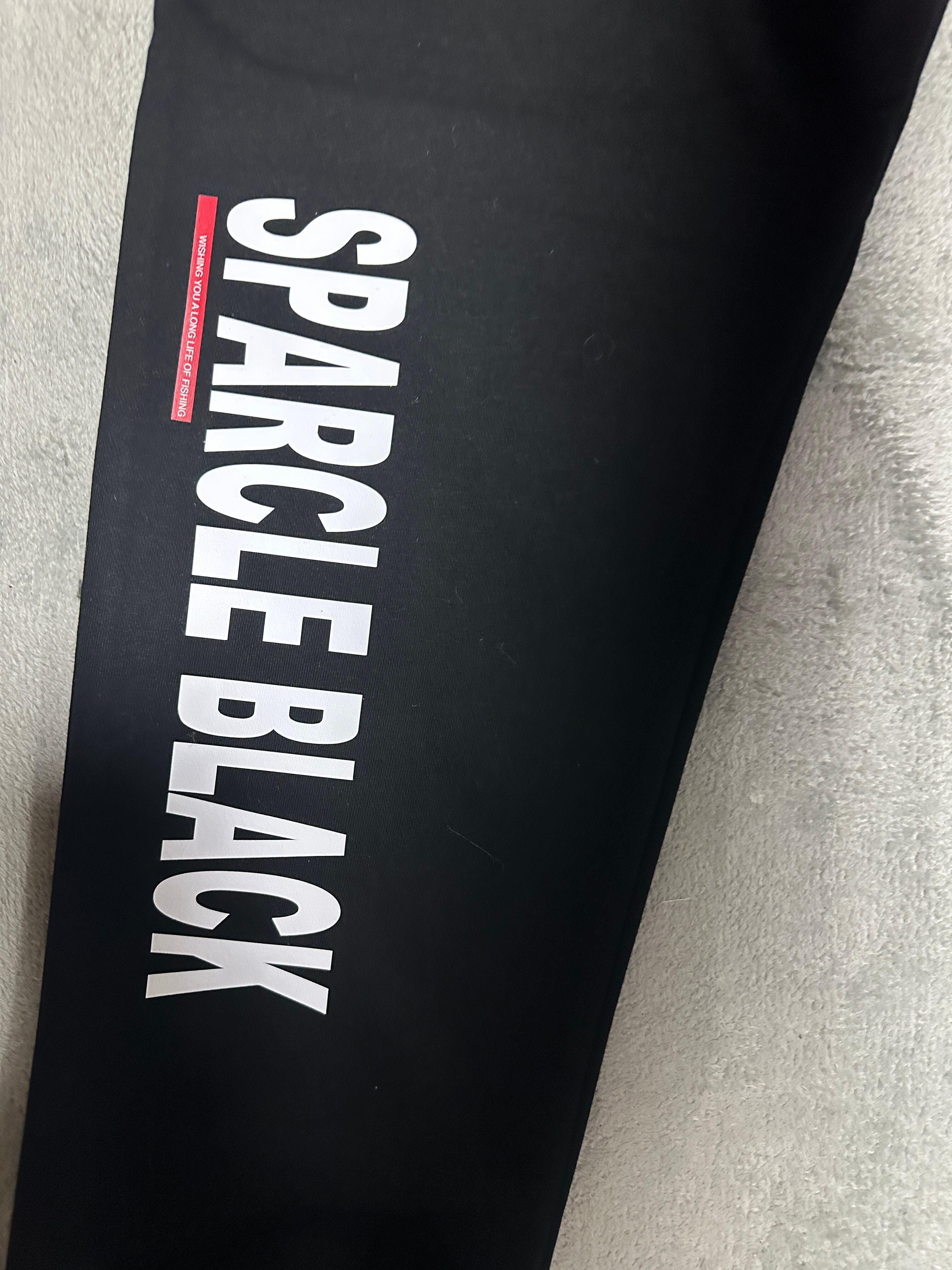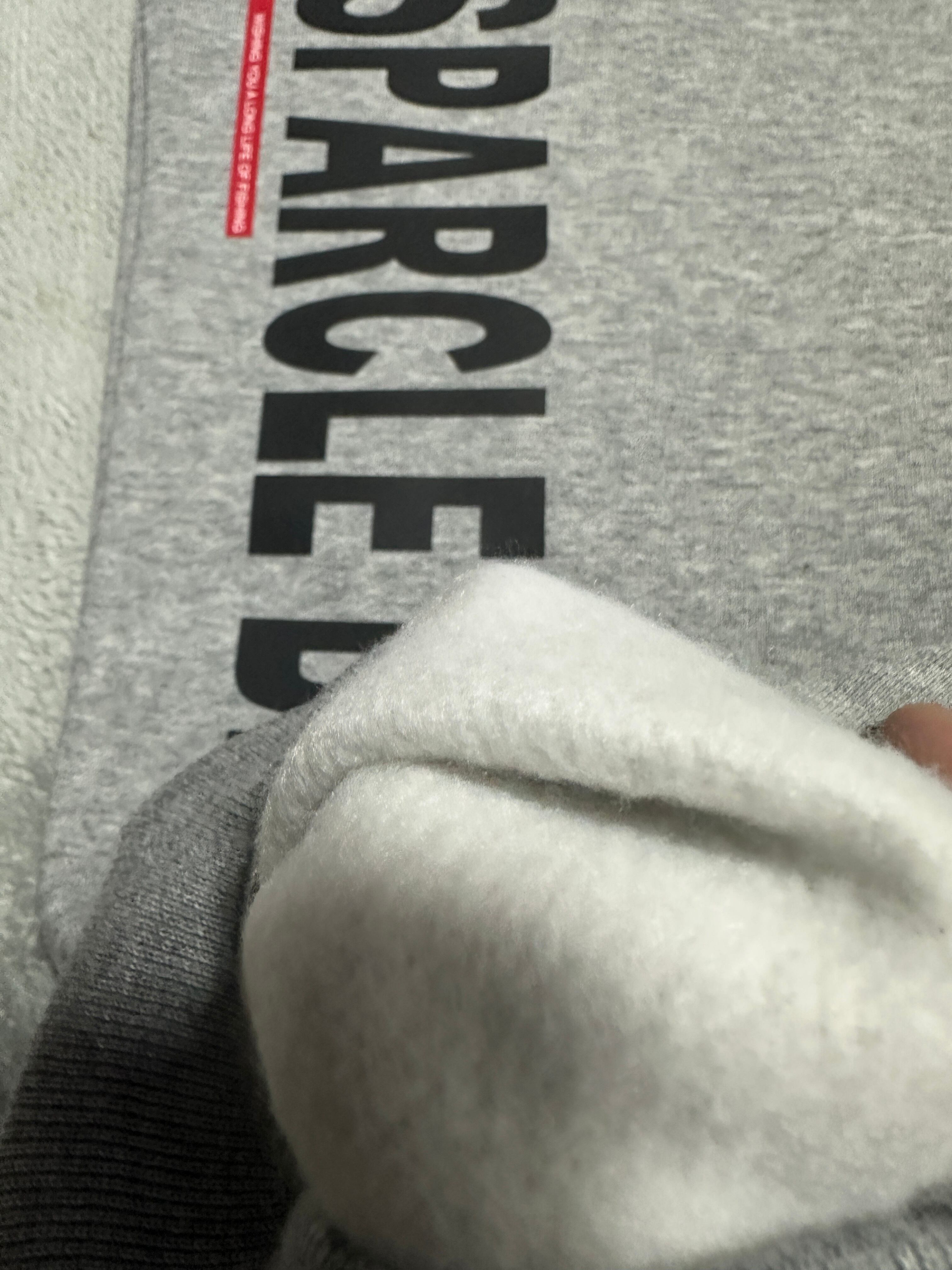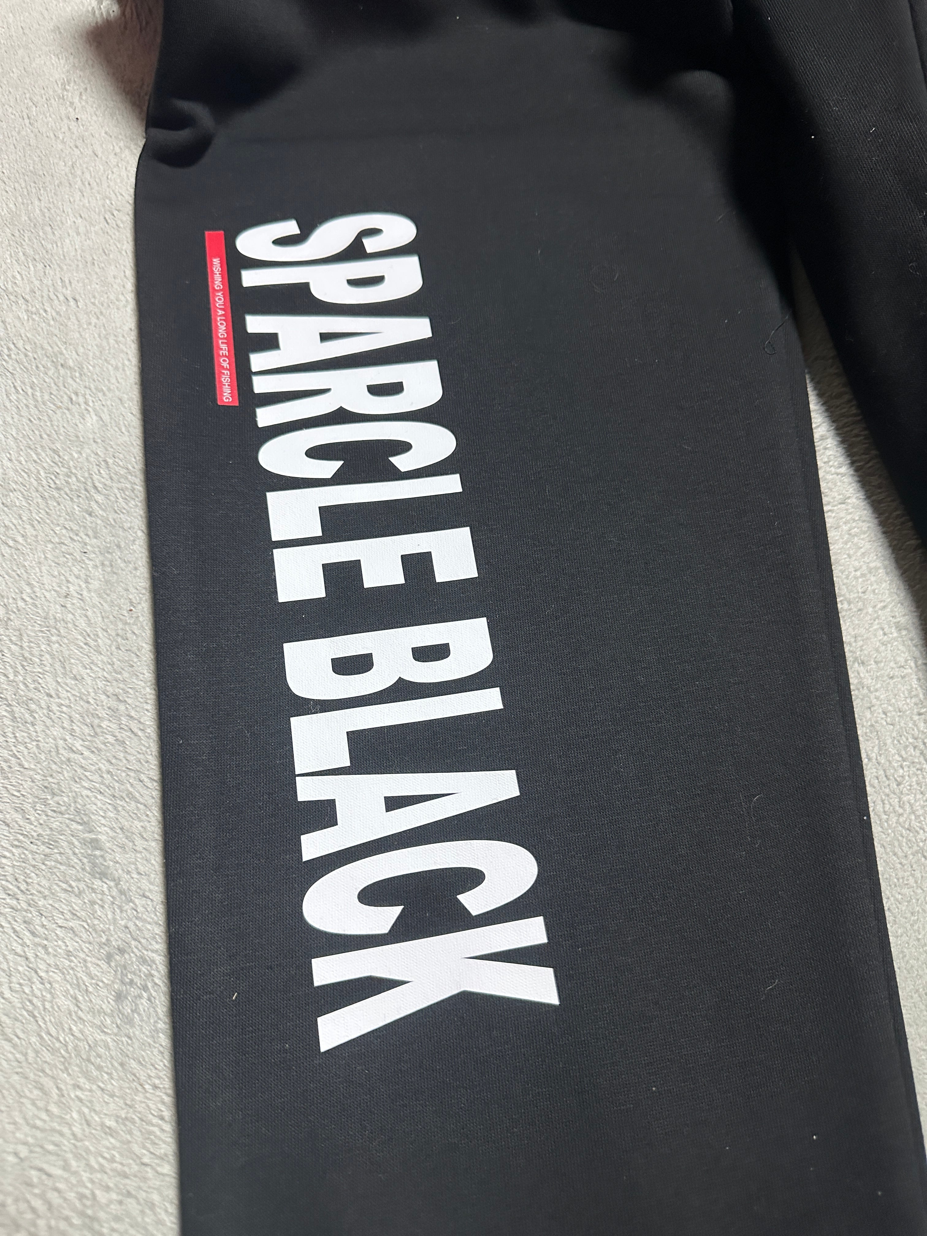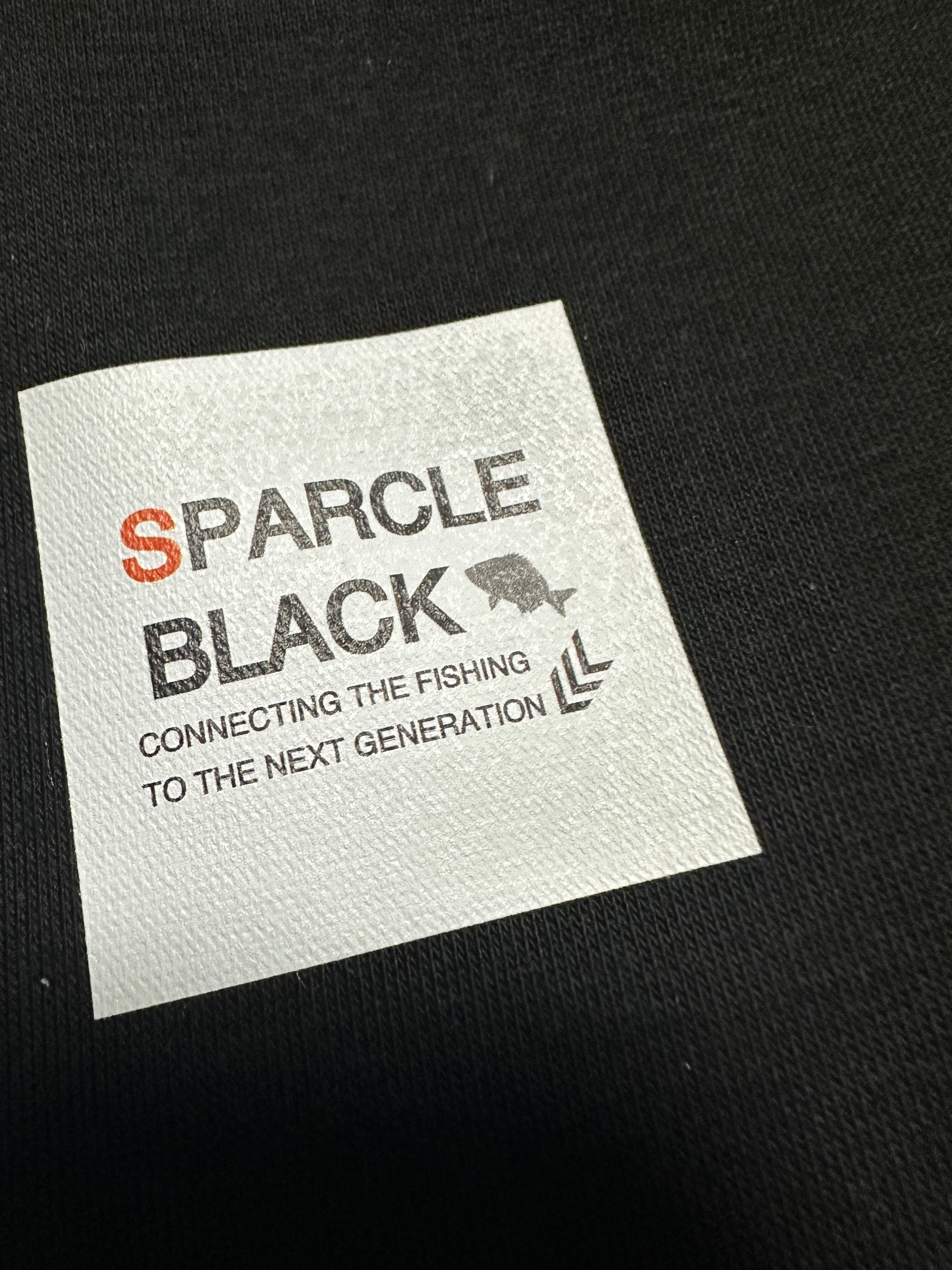 左後ろに、右前チョイ下にSPARCLE BLACKスクエアロゴをアウターを着ても見える位置にプリントしました。