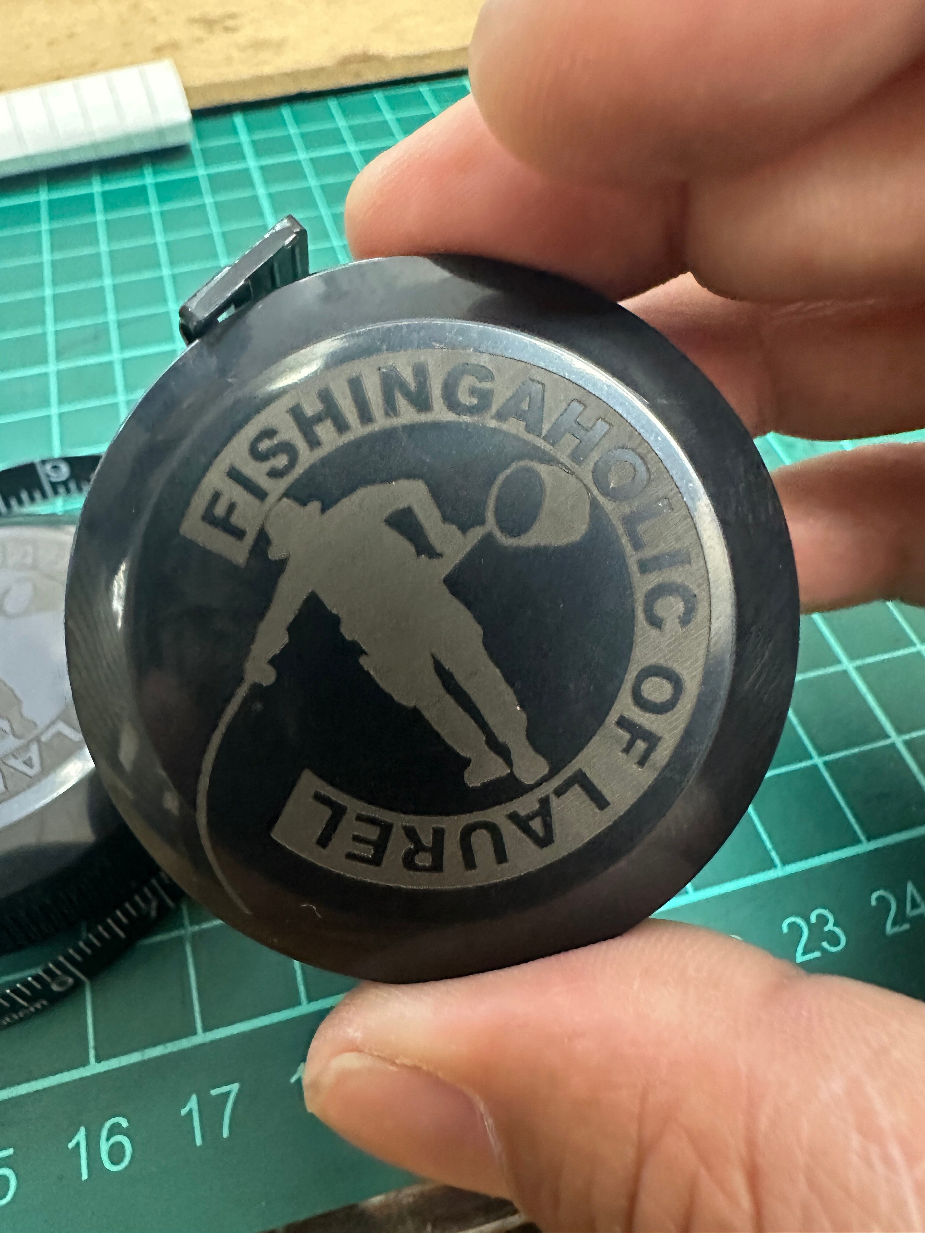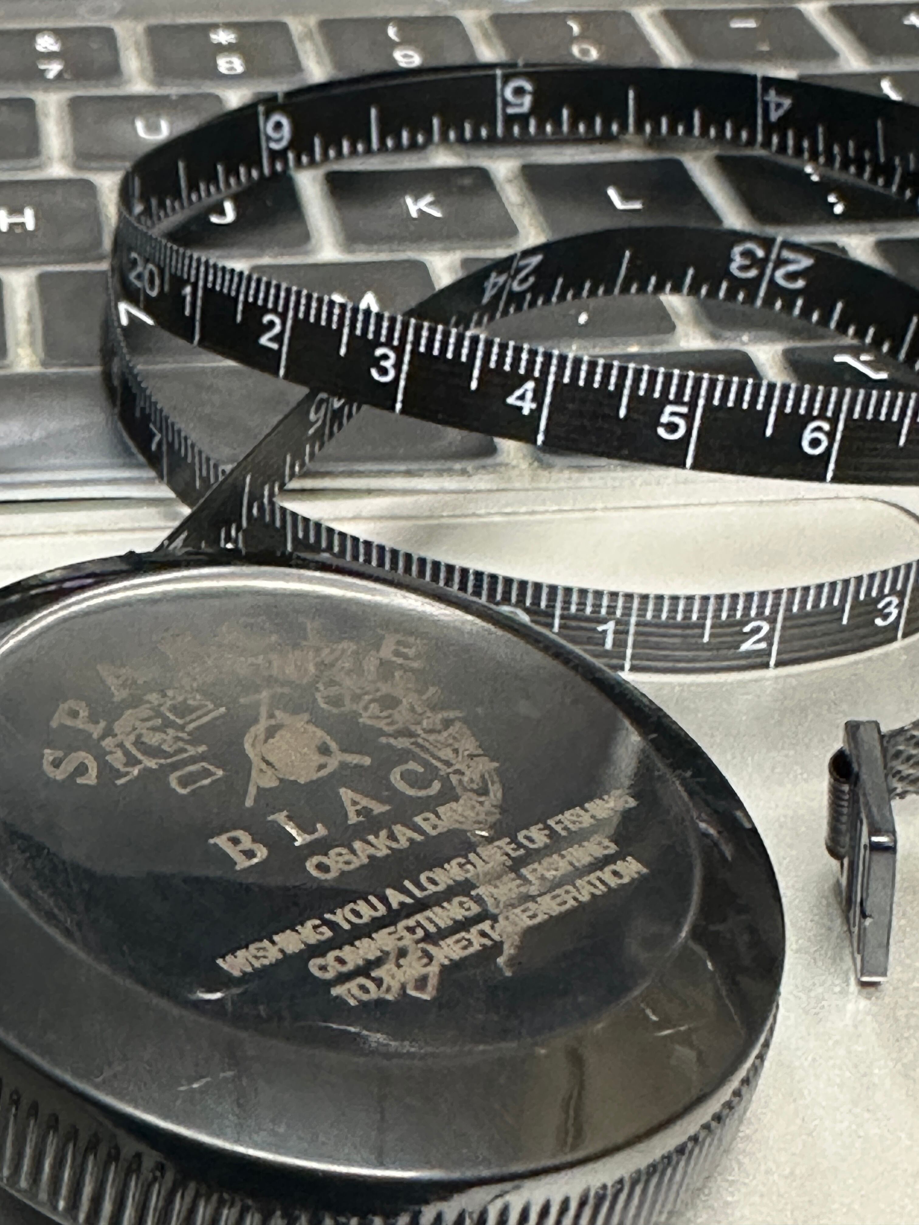 大きいメジャーを出すのはちょっと、、、そういった状況の時に使える手頃なメジャーがないかなと探していたところ見つけましたので、平面の部分にSPARCLE BLACKの大阪湾モチーフロゴを彫刻して、はんばいすることになりました。